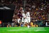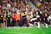 ASU redshirt junior running back Raleek Brown (3) running the ball for a touchdown during a game against Texas State on Saturday, Sept. 13, 2025, at Mountain America Stadium in Tempe. ASU won 34-15.