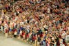 A Turning Point USA staff member tosses a “Make America Great Again” hat into the crowd during the Charlie Kirk vigil at Desert Financial Arena on Monday, Sept. 15, 2025, in Tempe.