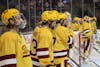 ASU hockey team lined up at a game against University of Nebraska Omaha at Mullet Arena on Saturday, Nov. 16, 2024, in Tempe. ASU lost 4-2.