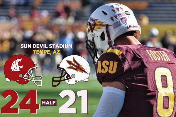 Washington State leads ASU 24-21 at halftime at Sun Devil Stadium.