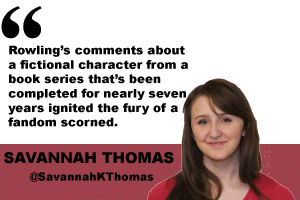 Rowling’s comments about a fictional character from a book series that’s been completed for nearly seven years ignited the fury of a fandom scorned.