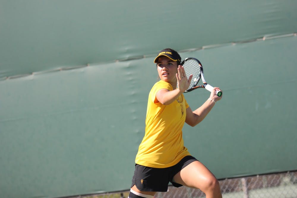 The ASU women's tennis team got swept in doubles play Sunday, but took four of seven sets from the Michigan Wolverines in singles.