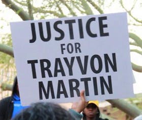 Protesters in hooded sweatshirts gather in downtown Phoenix to march against the mishandling of the case of George Zimmerman.